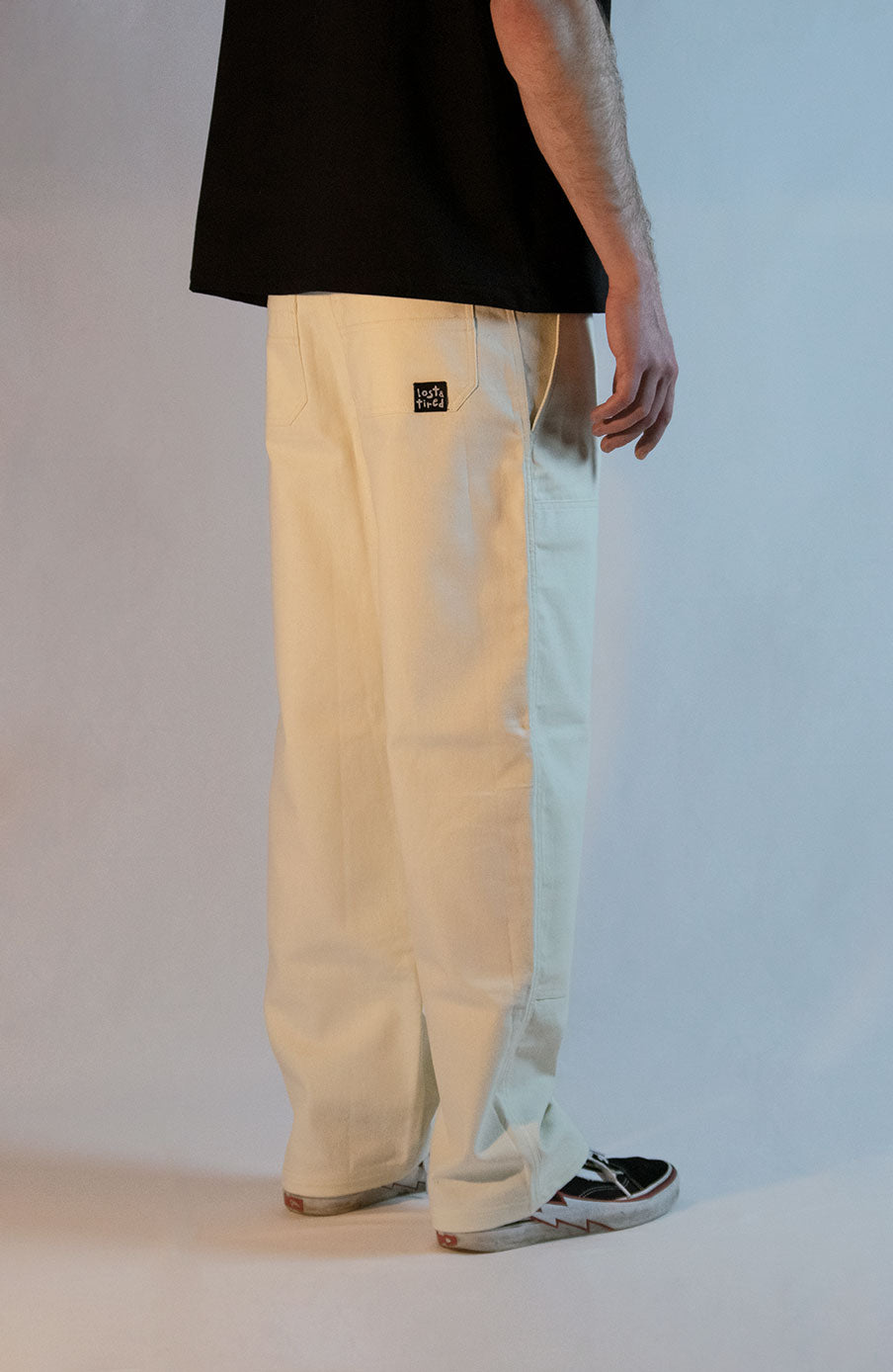 These cream double knee pants are perfect for anyone who loves streetwear. You can wear them with a sweater or an oversized tee.